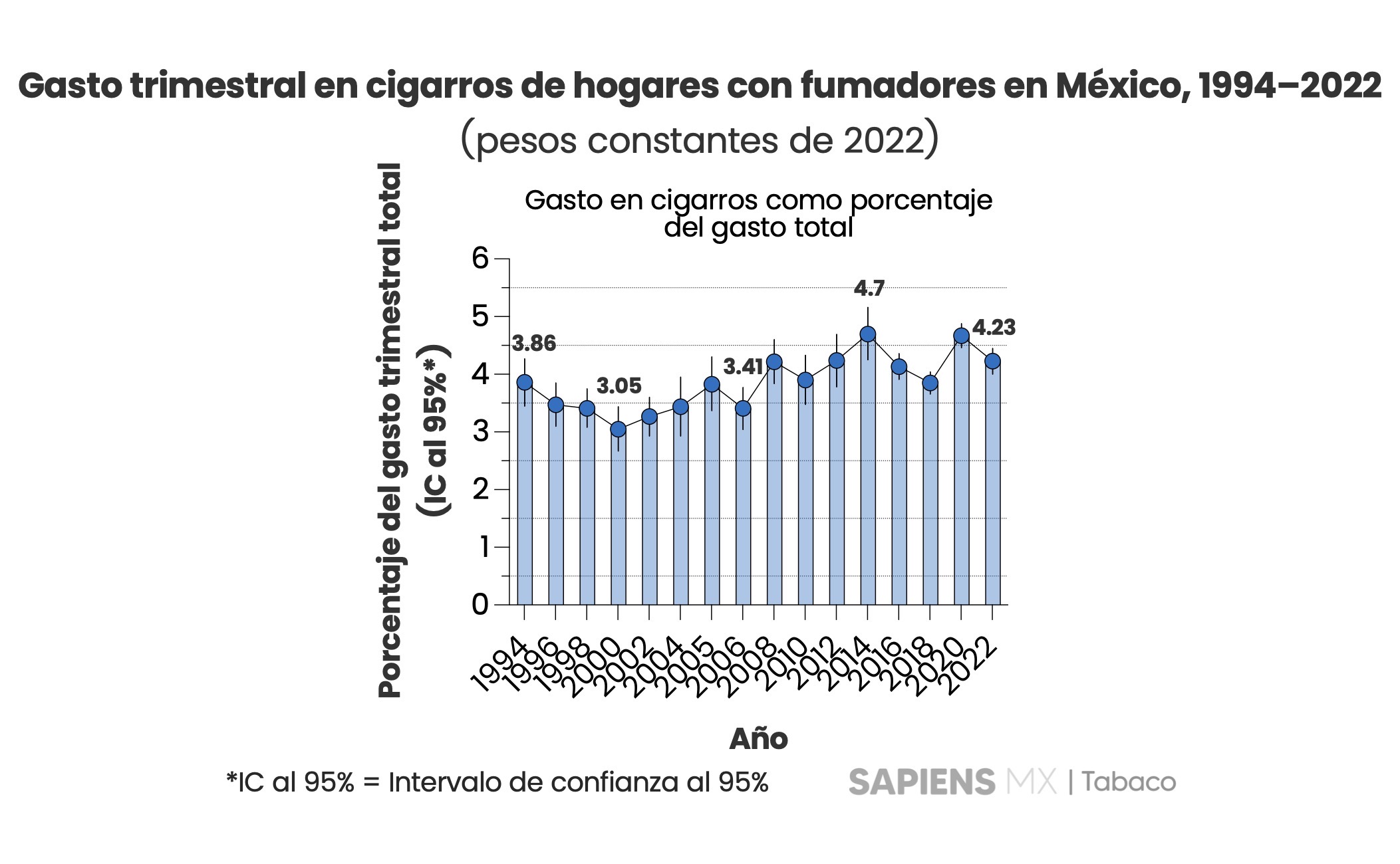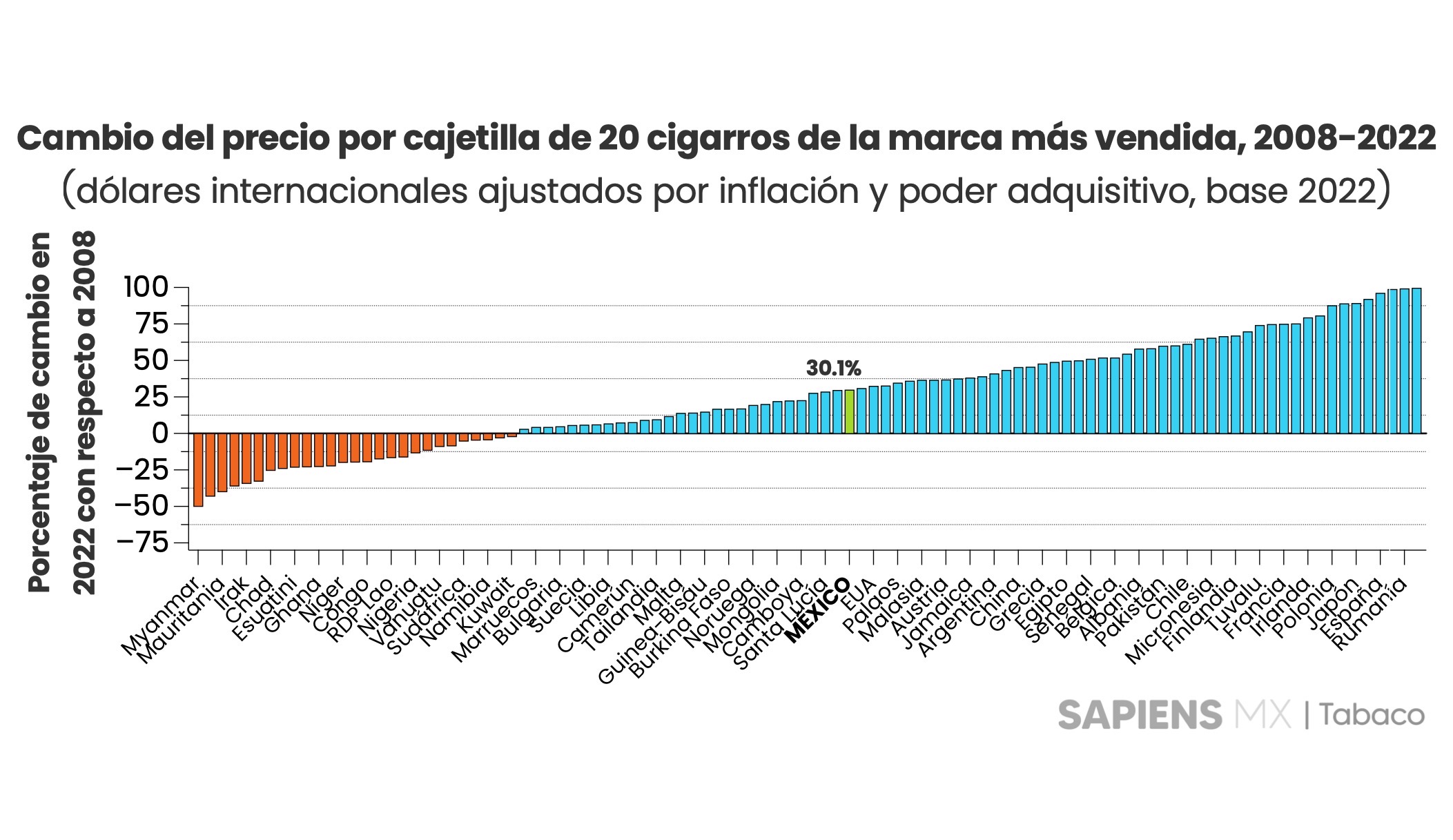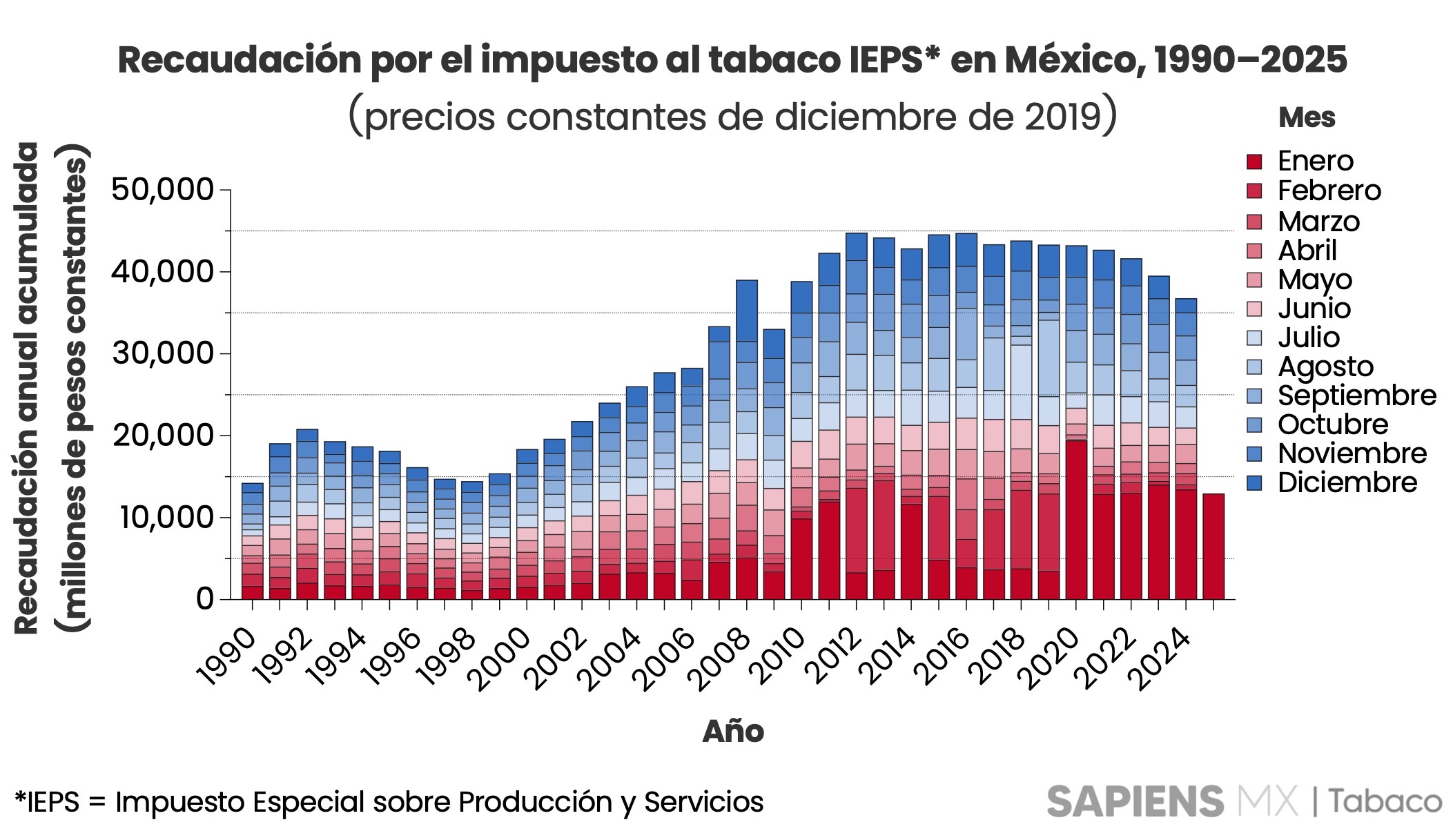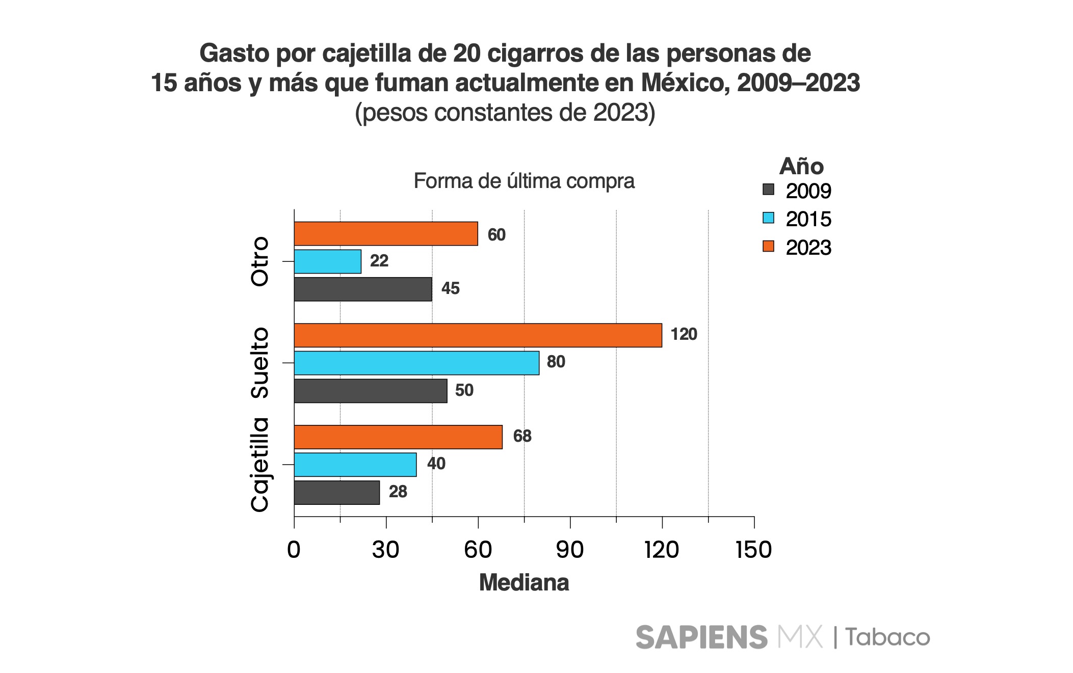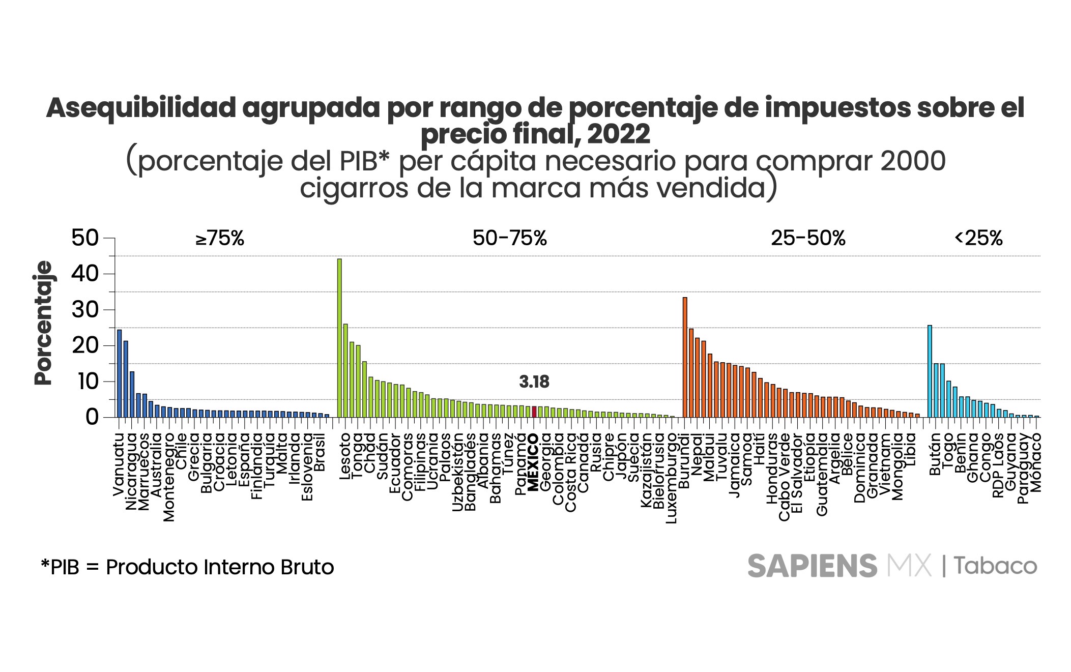 Los indicadores que se presentan en esta sección permiten analizar la evolución de los impuestos al tabaco en México, así como de las principales variables que modifican: precios, asequibilidad, consumo y recaudación. Los aumentos de impuestos elevan los precios, ya que constituyen una parte importante de ellos; si los precios crecen más rápido que los ingresos, disminuye la asequibilidad; los precios más altos reducen el consumo; y los impuestos más elevados también incrementan la recaudación.